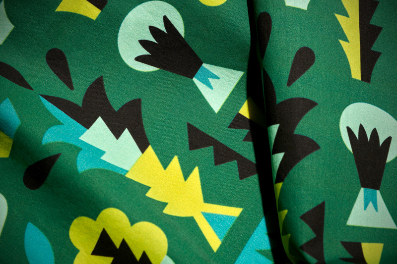 Progetti di stampa su tessuto realizzati a partire da collage astratti e disegni floreali.